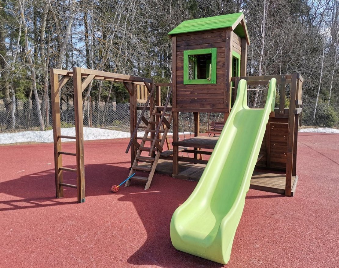 Рекомендованная распределенная единовременная нагрузка: игровая платформа 350кг., встроенный столик с лавочками 200кг., деревянная лестница 100кг., скалодром 150кг., канатная лестница 150кг., рукоход 150кг, скат 150кг.