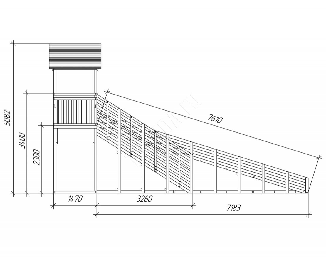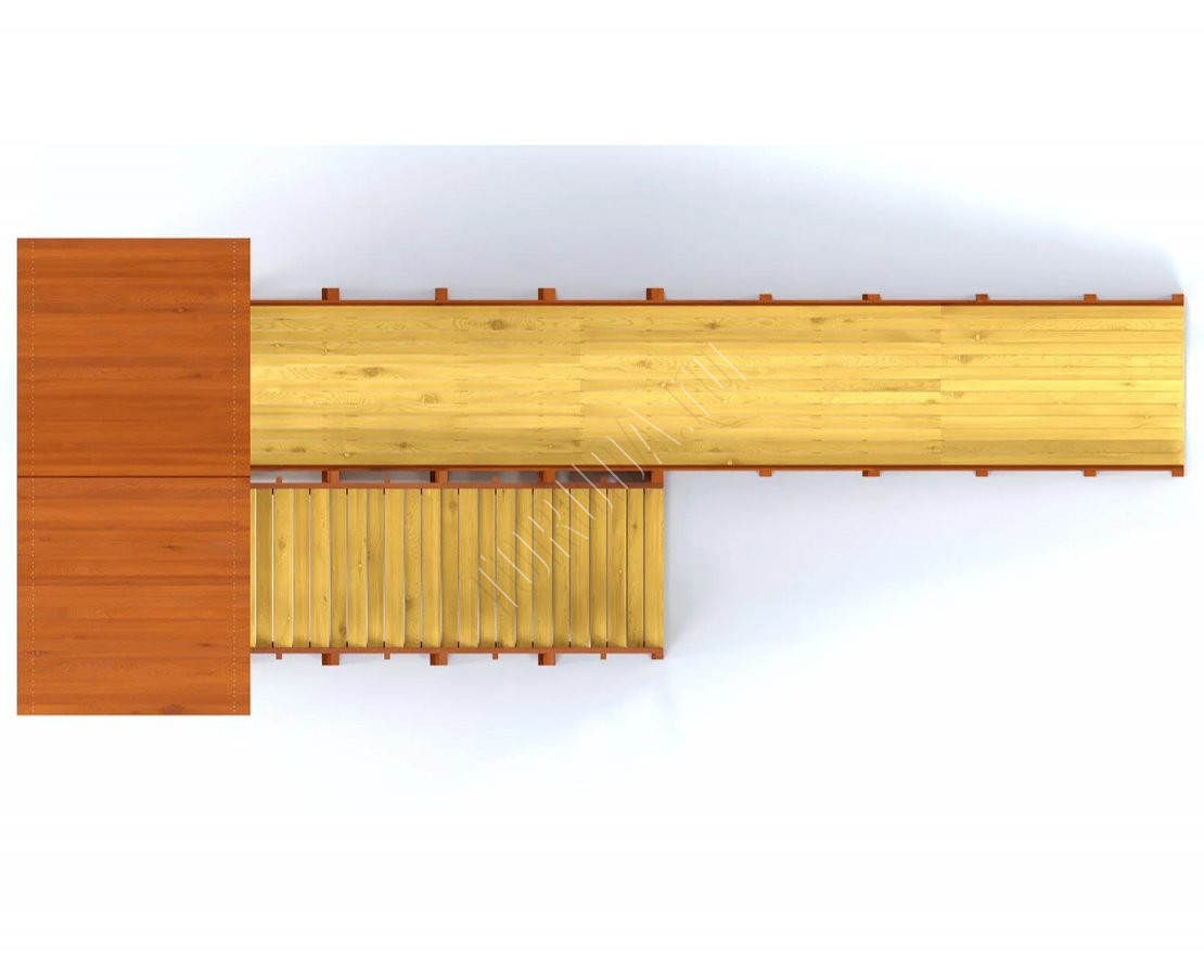 Конструкция тщательно спроектирована и выполнена из качественных материалов, что гарантирует безопасность и долгий срок службы. Каркас изготовлен из надежного клееного бруса, а в качестве защитного покрытия использован лакокрасочный состав с разрешающим сертификатом для применения на детских площадках.