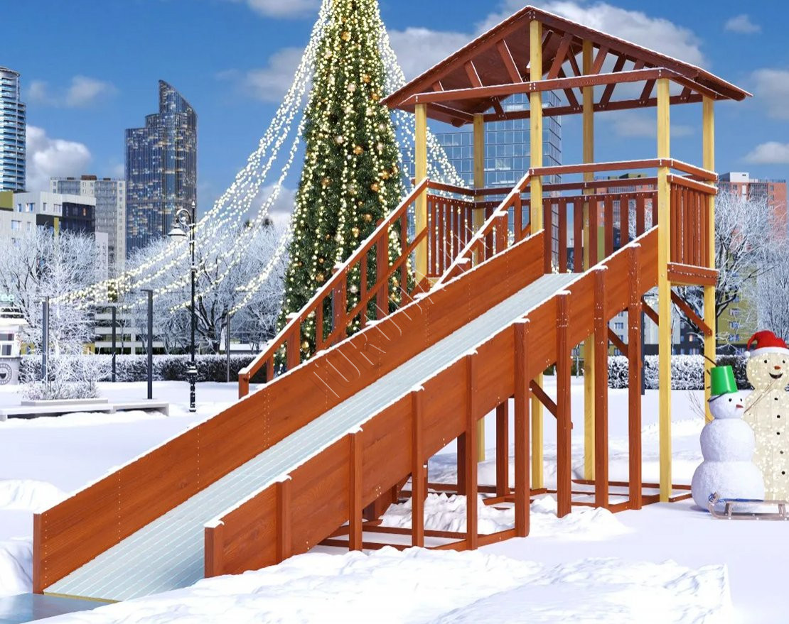 Активные дети готовы проводить время на свежем воздухе даже зимой. А деревянная горка «TORUDA Север» - 6/1 – лучшее сезонное предложение для просторных спортивно-игровых площадок.