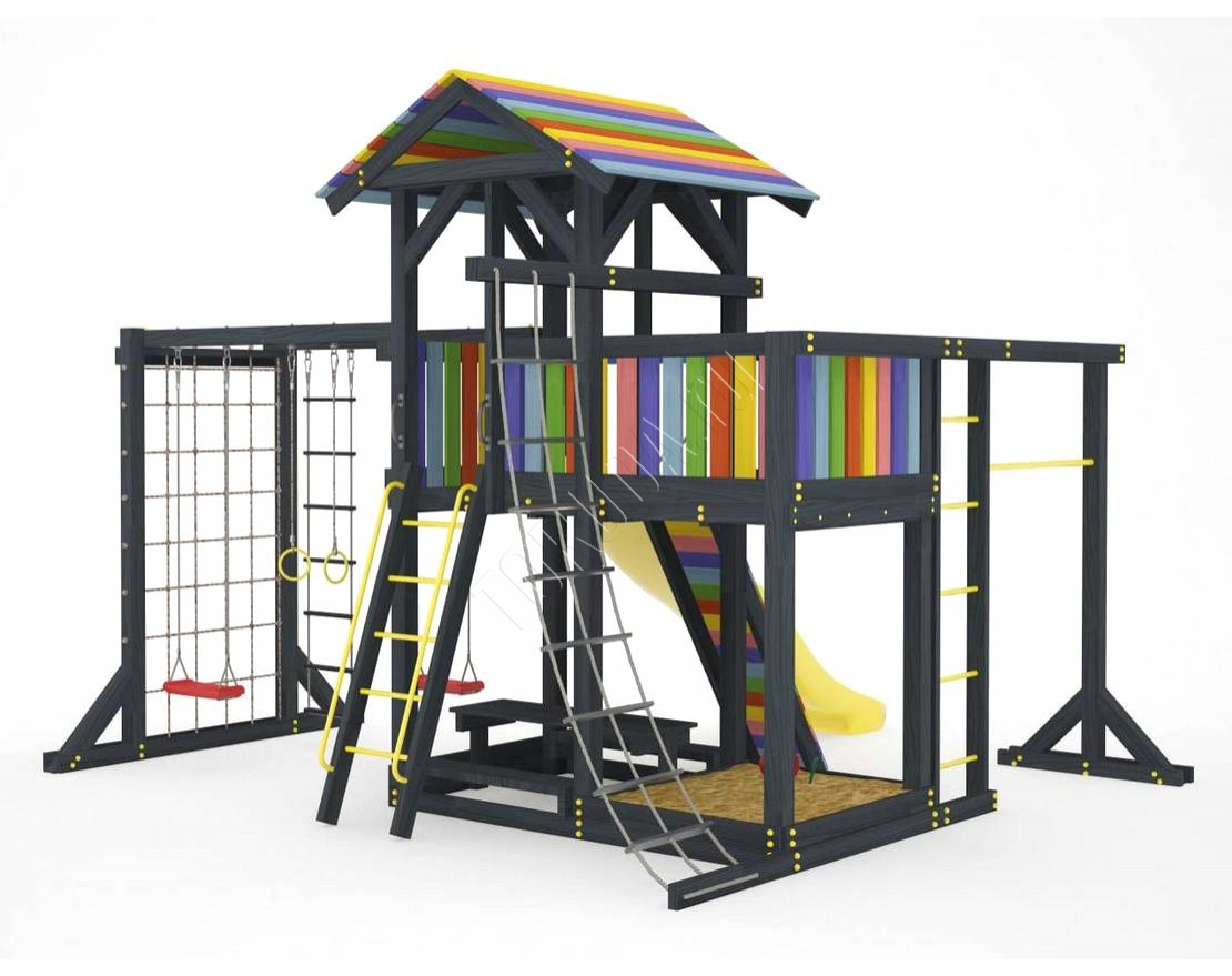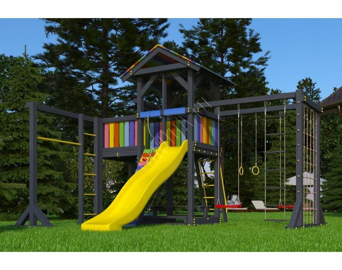 Детская площадка обладает довольно широким функционалом, предназначена для дачи, коттеджа.