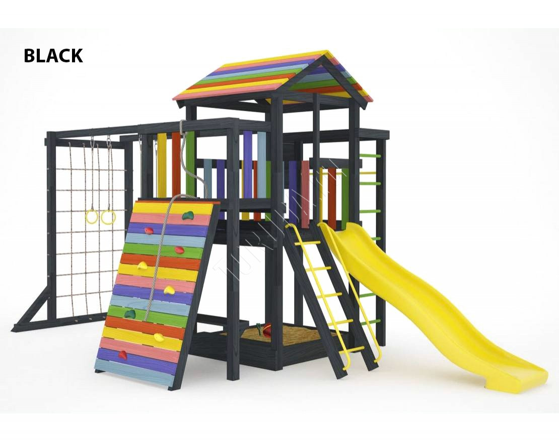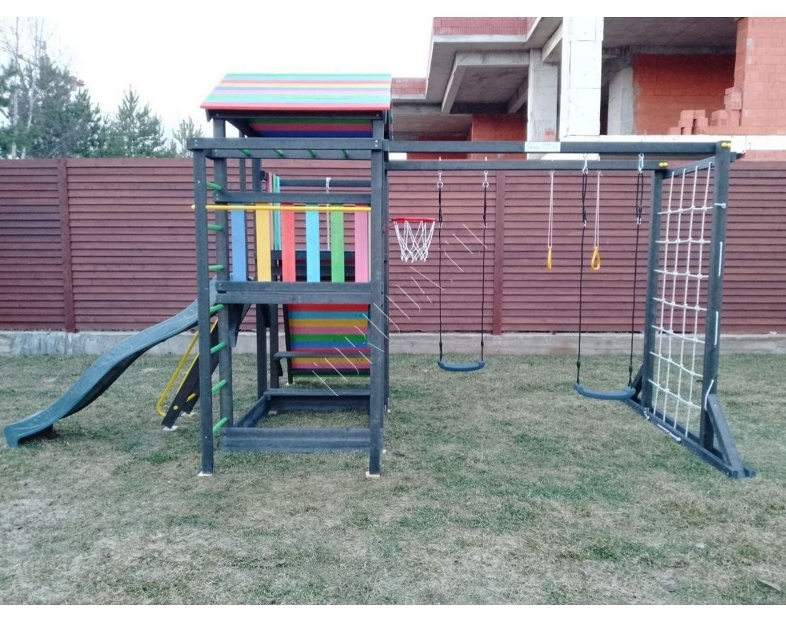 Детская площадка обладает довольно широким функционалом, предназначена для дачи, коттеджа.