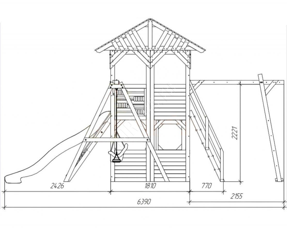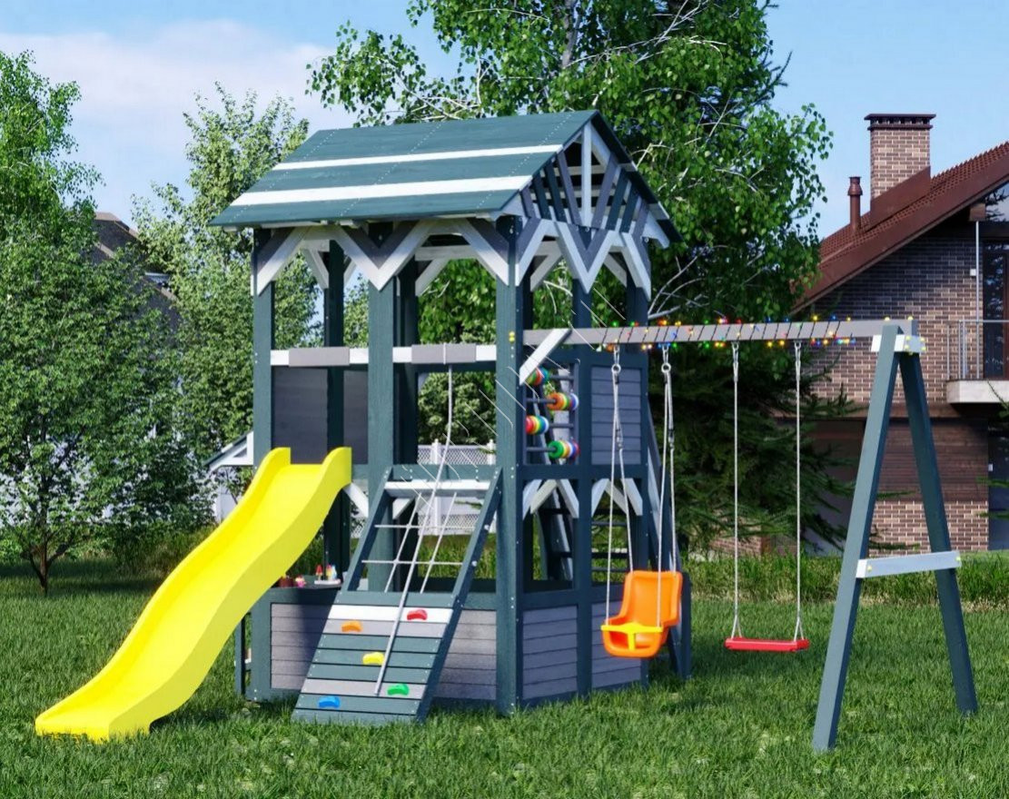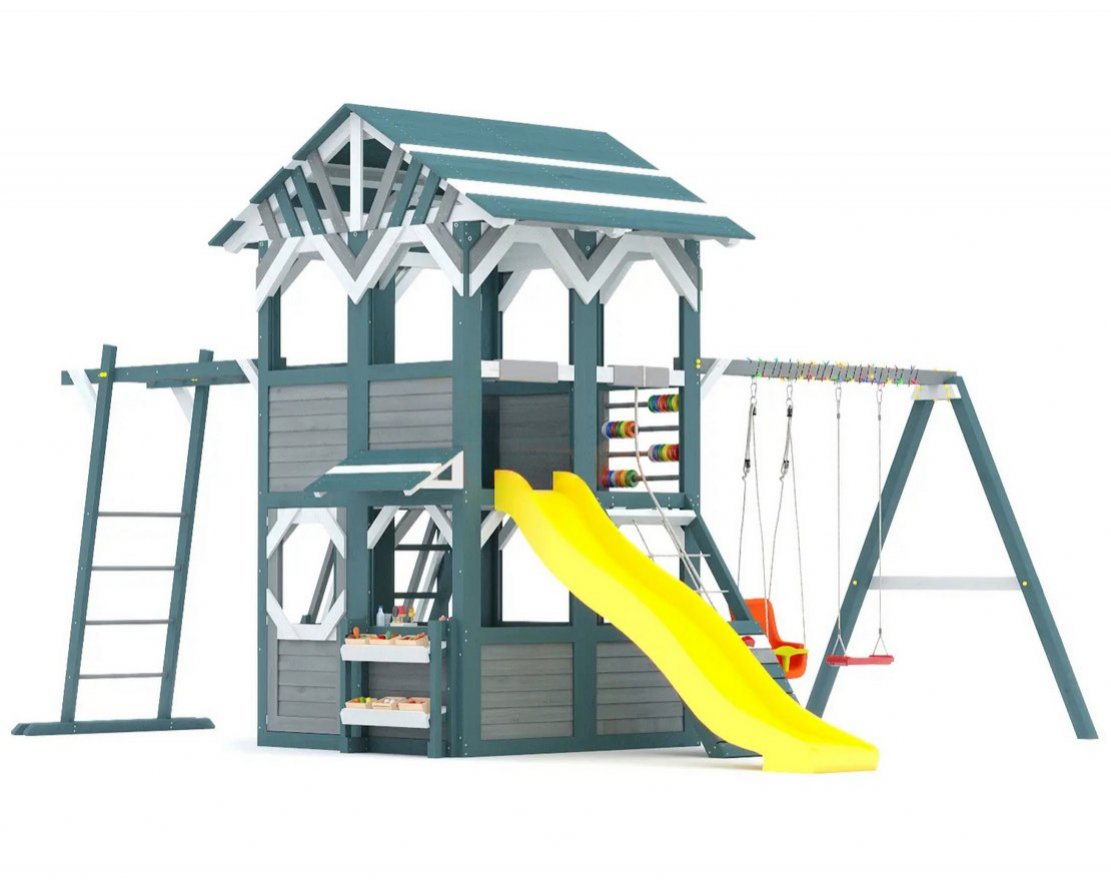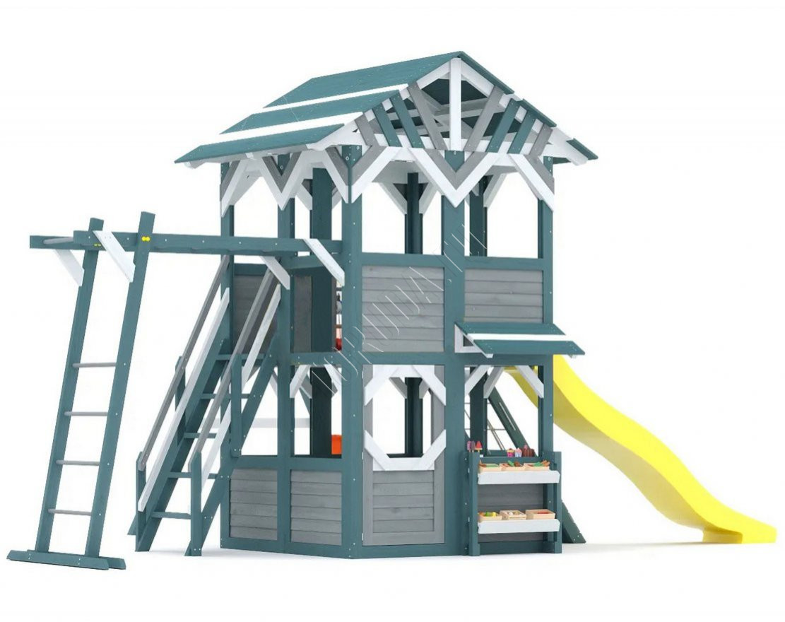 Этот комплекс сочетает в себе игровую и спортивную площадку, а также уютный детский домик с просторным игровым пространством. Он открывает двери в мир сказочных приключений для детей разного возраста (от 3 до 16 лет), развивая их физические способности и воображение.