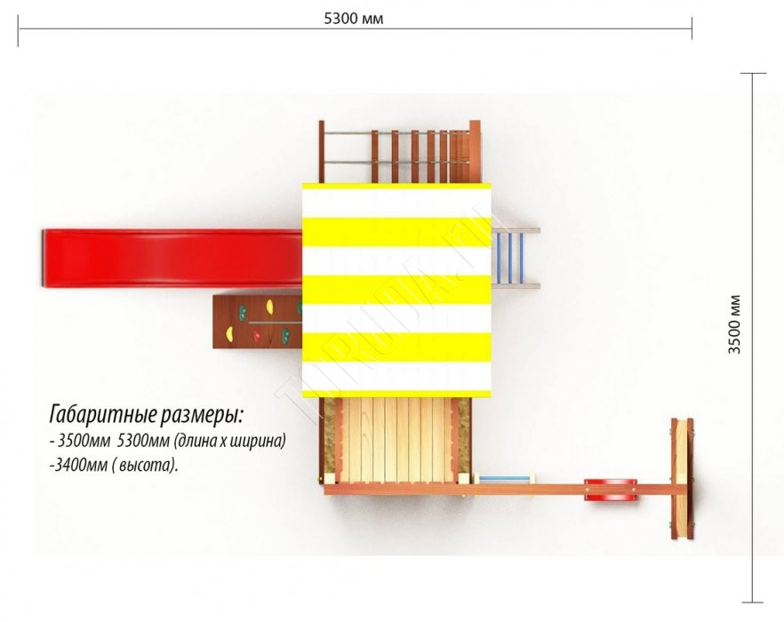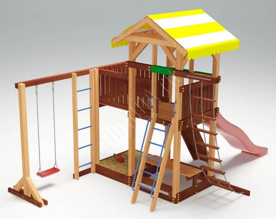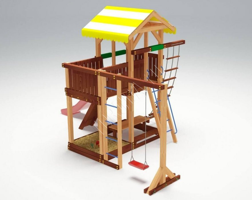 Площадка Парус 5 обладает довольно широким функционалом (который по желанию можно легко расширить). Детская площадка предназначена для дачи, коттеджа.