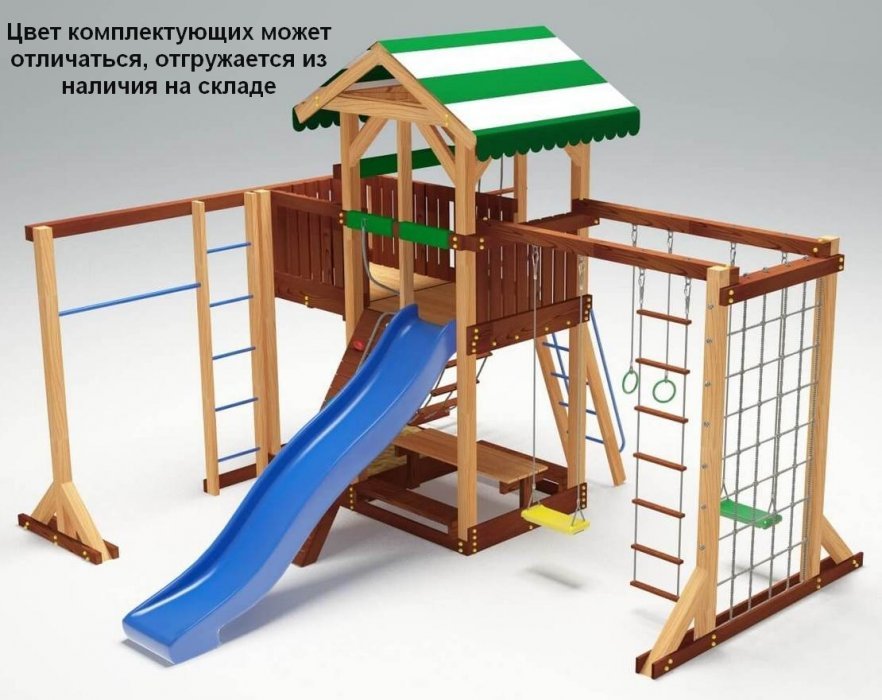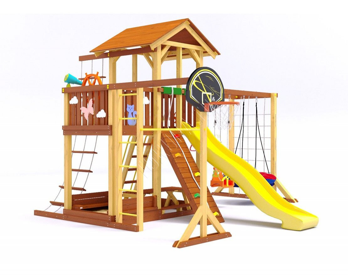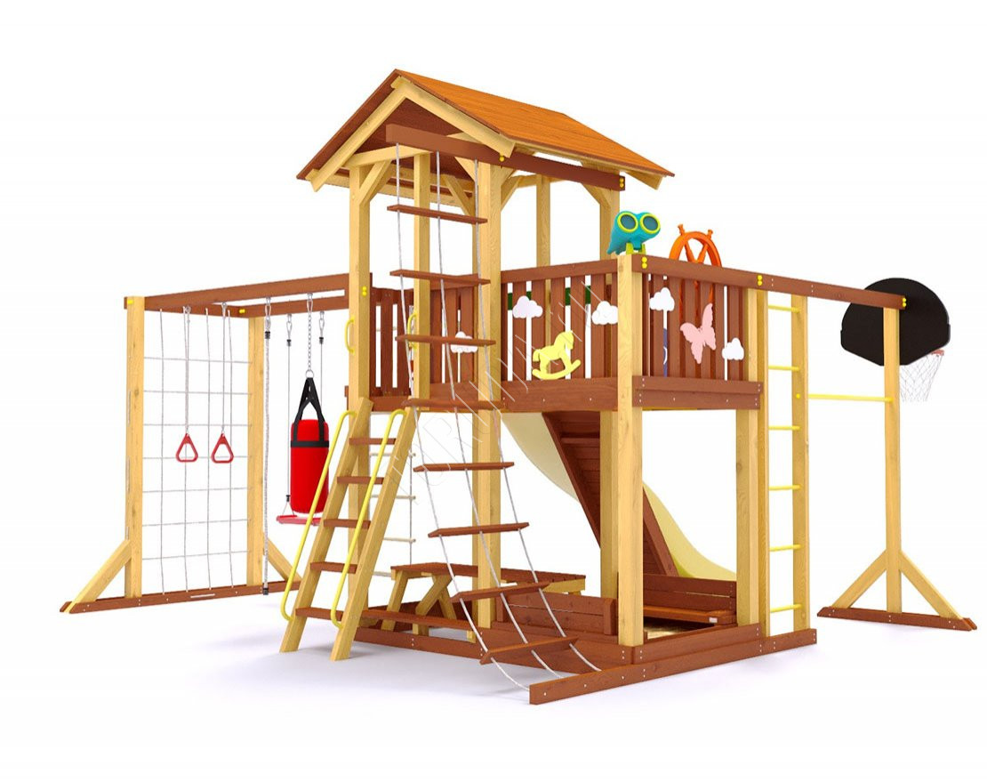 Площадка Парус 6 обладает довольно широким функционалом (который по желанию можно легко расширить). Детская площадка предназначена для дачи, коттеджа.