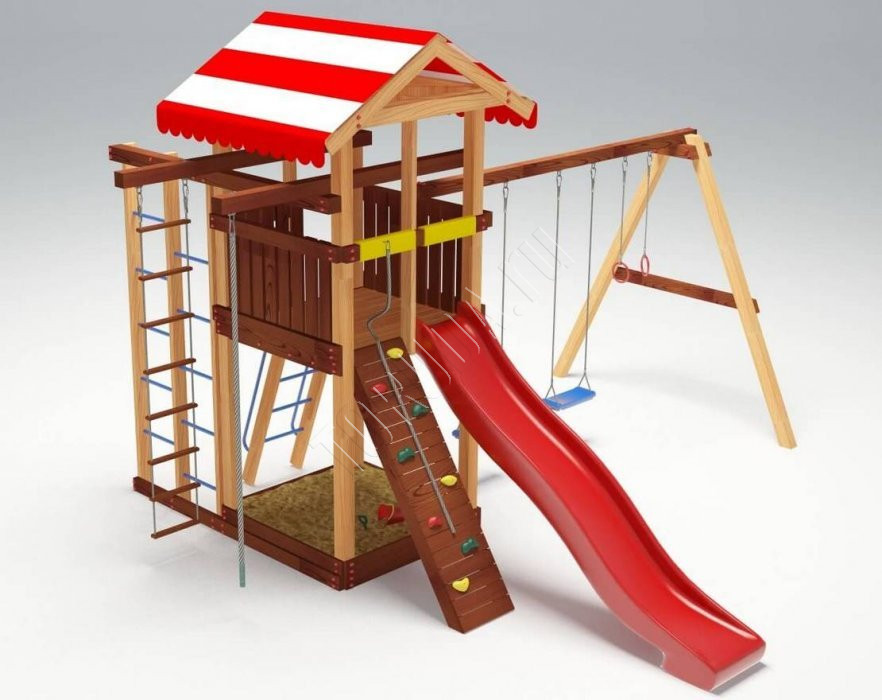 Площадка Парус 3 обладает довольно широким функционалом (который по желанию можно легко расширить). Детская площадка предназначена для дачи, коттеджа.