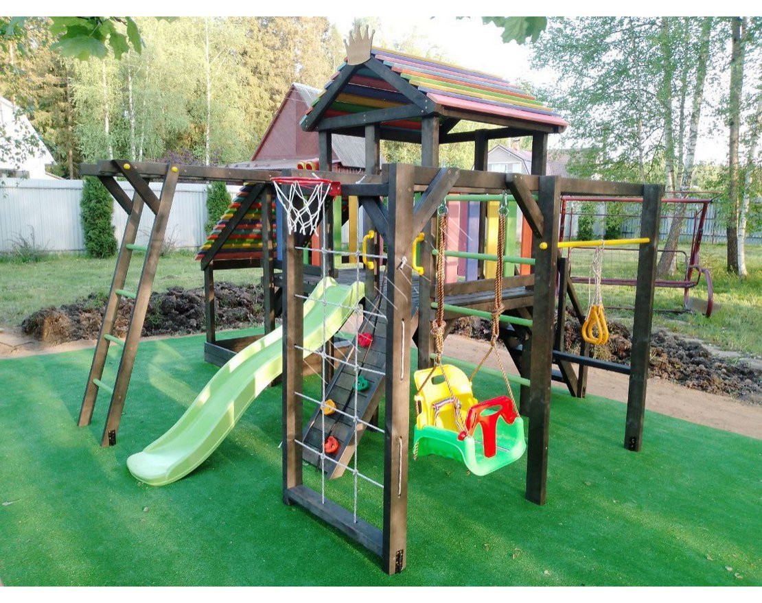 Детская площадка обладает довольно широким функционалом, предназначена для дачи, коттеджа.
