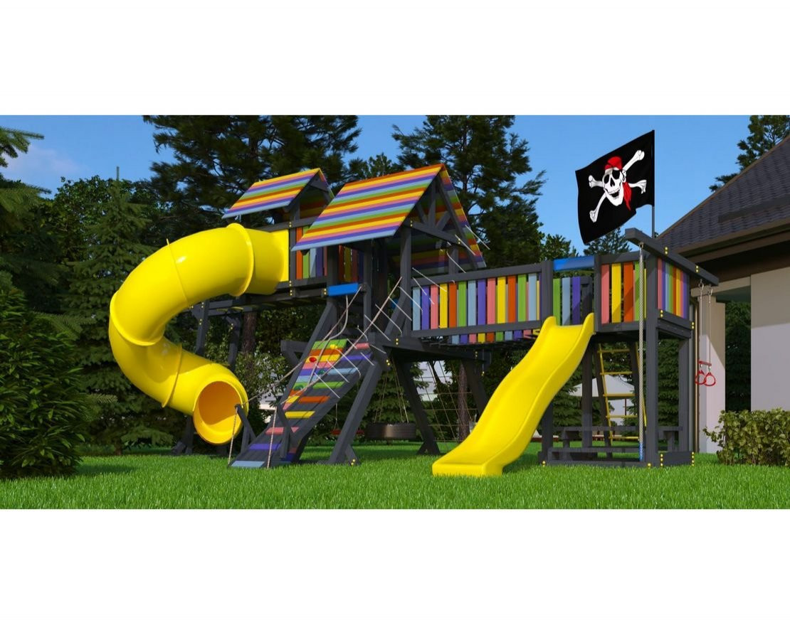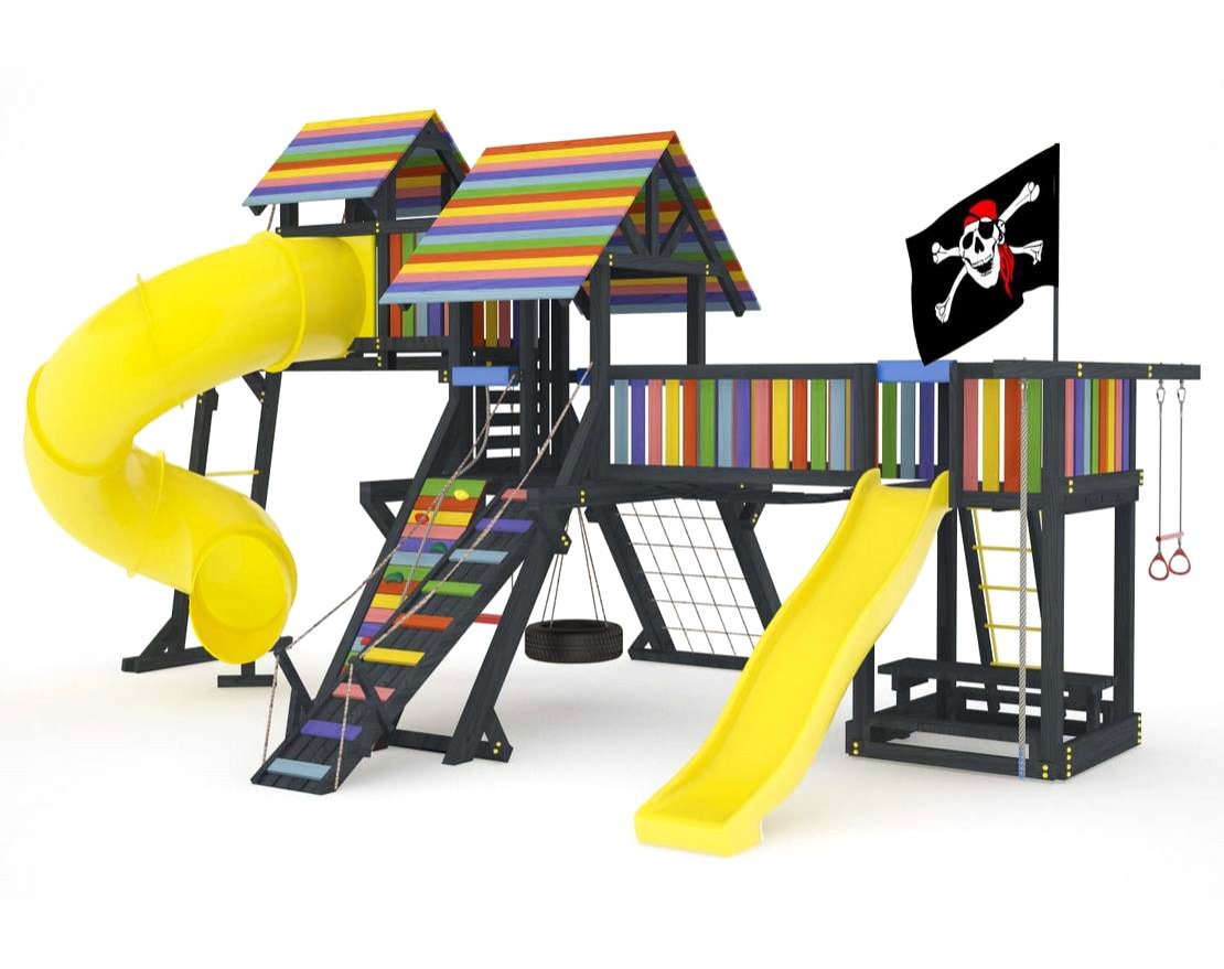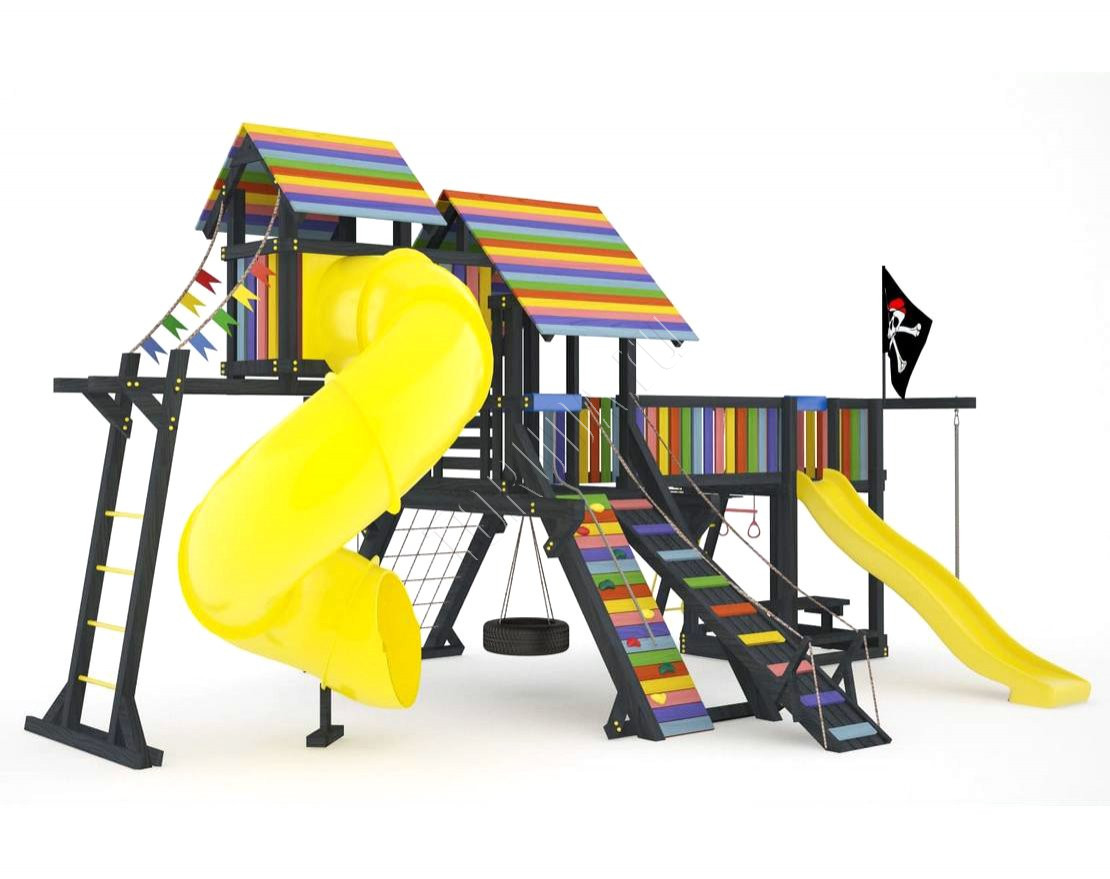 Детская площадка обладает довольно широким функционалом, предназначена для дачи, коттеджа.