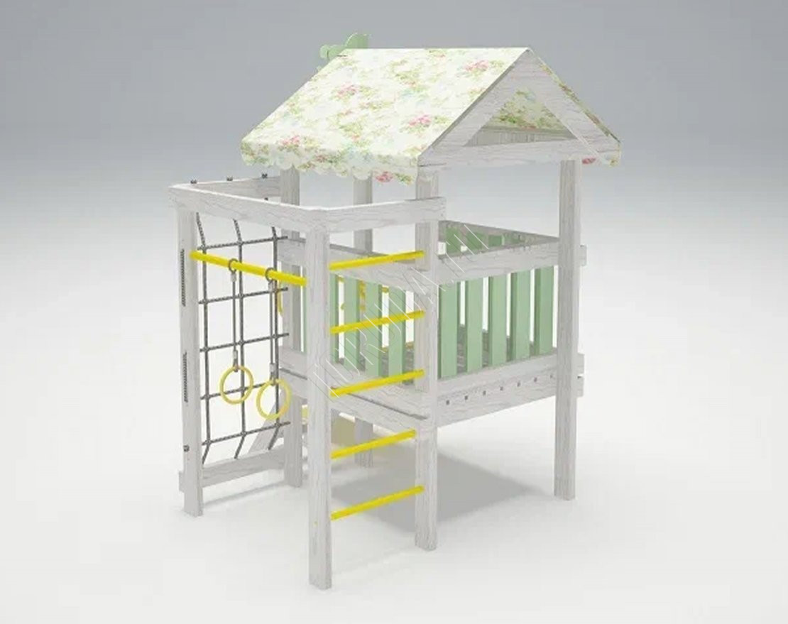 Для занятий спортом предусмотрены удобные гимнастические кольца и турник. Занятия на них делают детей крепкими, ловкими, выносливыми и укрепляют иммунитет. Ловким и любопытным малышам понравится сетка-лазалка. Через неё легко перелезть на турник (укрепляет мышцы рук, спины и груди) и небольшую шведскую стенку.