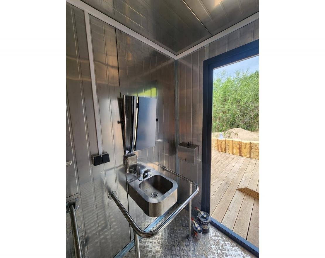 Данная модификация модульного сетевого туалета предполагает наличие отделения для маломобильных групп населения со всей необходимой сантехникой.