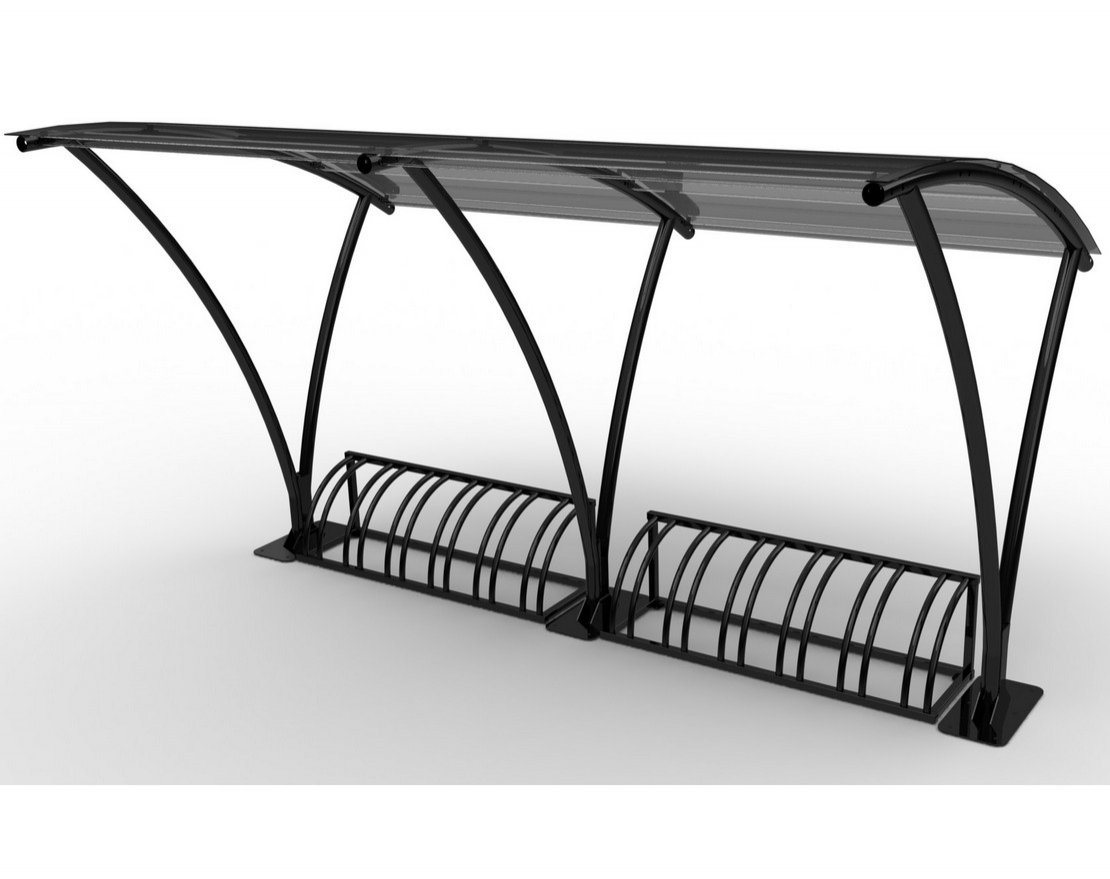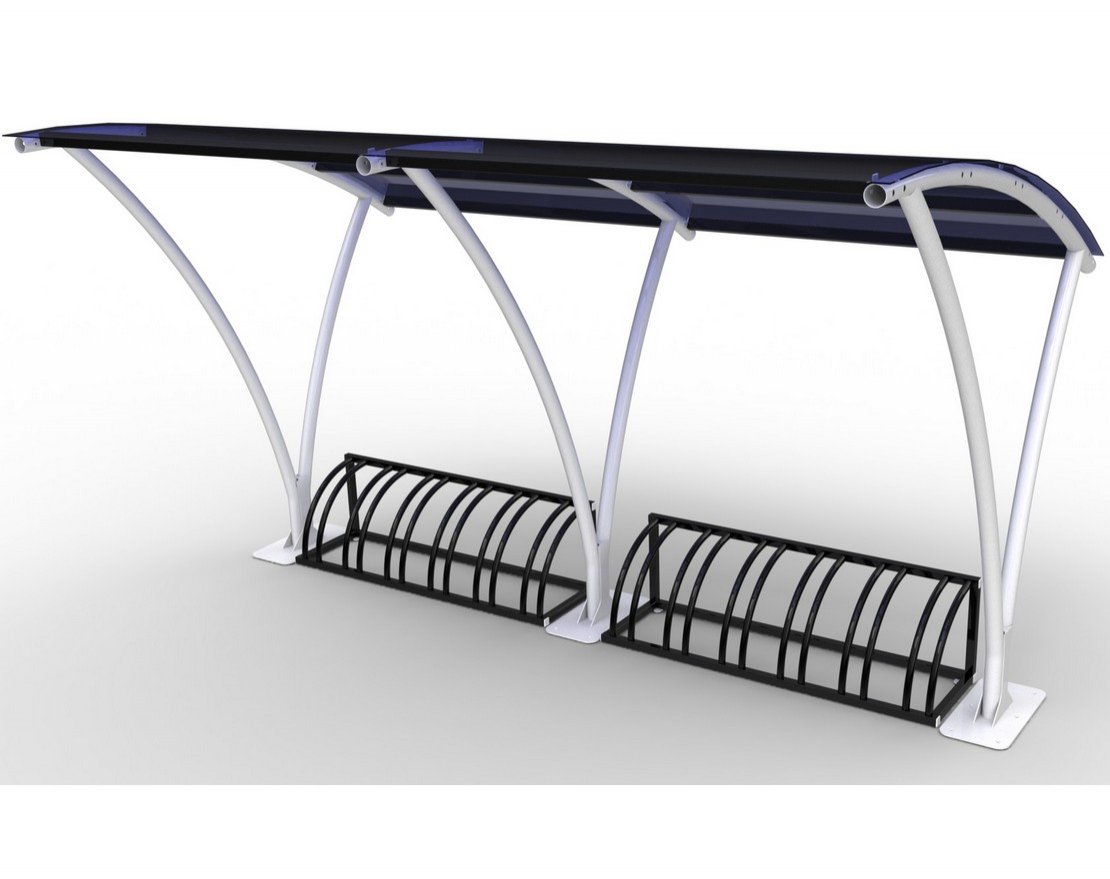 Велопарковка с навесом "Мегаполис" устанавливается в парках, зонах отдыха, у торговых центров, офисных зданий и других городских локаций. Обеспечивает упорядоченное размещение как вело-транспорта, так и самокатов, защищая от осадков и ультрафиолета.