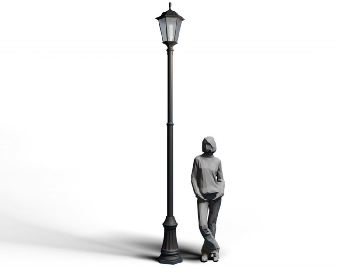 Производится путем бетонирования закладной детали с последующим креплением к ней стойки фонаря болтовым соединением.